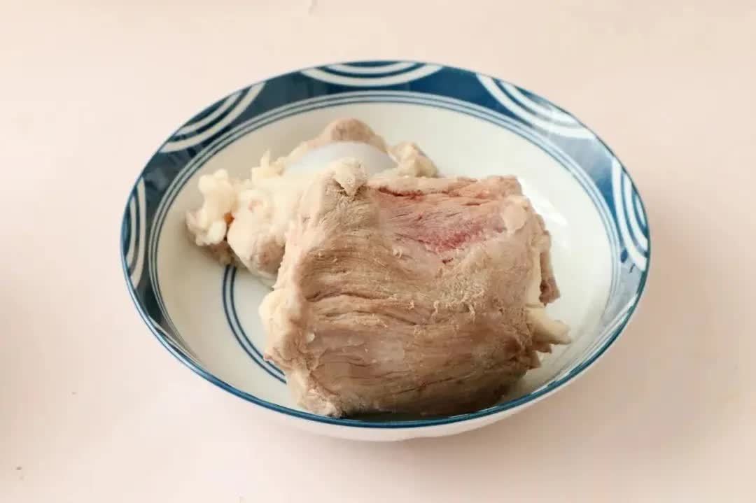 1、首先大棒骨要切块,然后入冷水锅,加料酒姜片焯烫,烧开捞出温水冲洗干净。